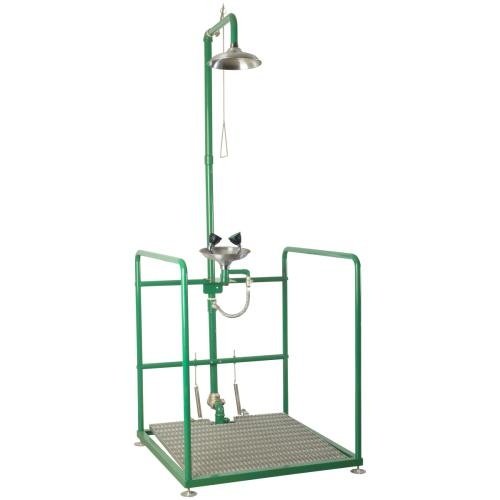 Данная модель представляет собой комплексное решение для обеспечения безопасности в условиях повышенного риска. Аварийный душ и станция для промывки глаз активируются нажатием на платформу, что обеспечивает мгновенное срабатывание в экстренной ситуации.